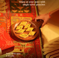 Our process is designed to ensure a minimum of three months shelf life, with most products lasting between three to six months. We carefully use high shelf-life ingredients and follow processes that preserve freshness without compromise. Along with this, our innovative packaging—single-serve packs, resealable pouches, and airtight tins—adds an extra layer of protection, ensuring your 7 Bazaari favourites stay just as fresh as the day you bought them.