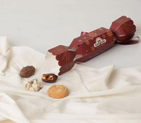 Inspired by the classic dining table tradition, our Chocolate & Cookies Cracker adds festive fun to every meal—pulled apart with a cheerful snap to reveal sweet surprises. Inside awaits a gourmet assortment: White Chocolate Pistachio Date, Almond Chocolate Snapper, Maamouls filled with Dates, and Milk Chocolate Cashew Date. A playful custom, reimagined with indulgent flavours for your celebrations.