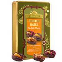 PREMIUM NUTS IN DATES ASSORTMENT Enjoy a luxurious selection of Nuts in Dates crafted with gourmet fillings like Almond Honey, Pistachio Rose and Apricot. A rich blend of natural sweetness and premium nuts in every bite.