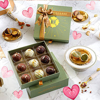 3 Badami Truffles: A rich mithai made with Mamra almonds and saffron, enrobed in dark chocolate — bold, nutty, and beautifully balanced